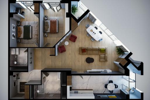 The multifunctional residential complex consists of 3 main above-ground buildings - A, B, C, and underground three-story parking. The complex is planned to have offices, shops, cafes, dry cleaning-laundry, spa center, gym, kindergarten and a number of other services, that will ensure an interesting daily life and rest for the residents. The residential complex will be surrounded by 9000 square meters of green areas, playgrounds. It will be a perfect resting place for all family members.