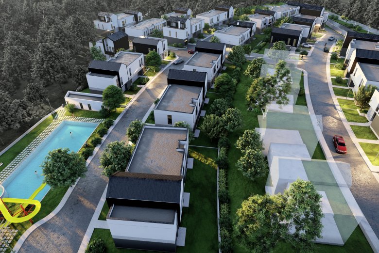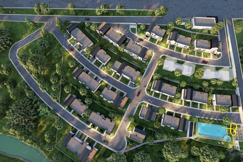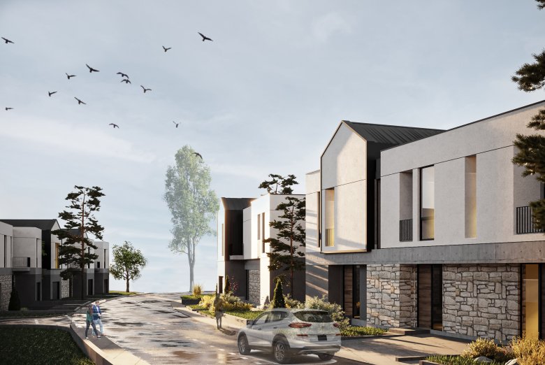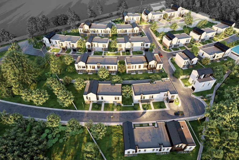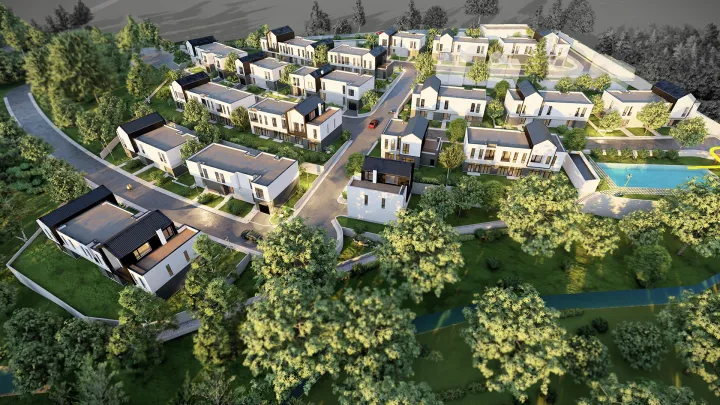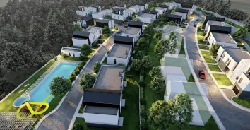 The residential community will comprise of 70 individual houses, with sizes ranging from 105.80 square meters to 256.80 square meters. Each house will feature its own garage for convenient and secure parking. The neighborhood offers expansive views of Mount Aragats from the right, and Ararat from the left side. It will include a water pump station, electrical substation, and gas supply for efficient utility services. The houses will also feature individual heating systems for personalized comfort. The neighborhood spans a total area of 28,524 square meters, with 60% of the area dedicated to beautifully landscaped green spaces without fences. The facades of the houses are adorned with high-quality plaster, paint, and stonework. The community will feature a range of amenities, including a convenient shop, a café, an open-air swimming pool, and a playground for children